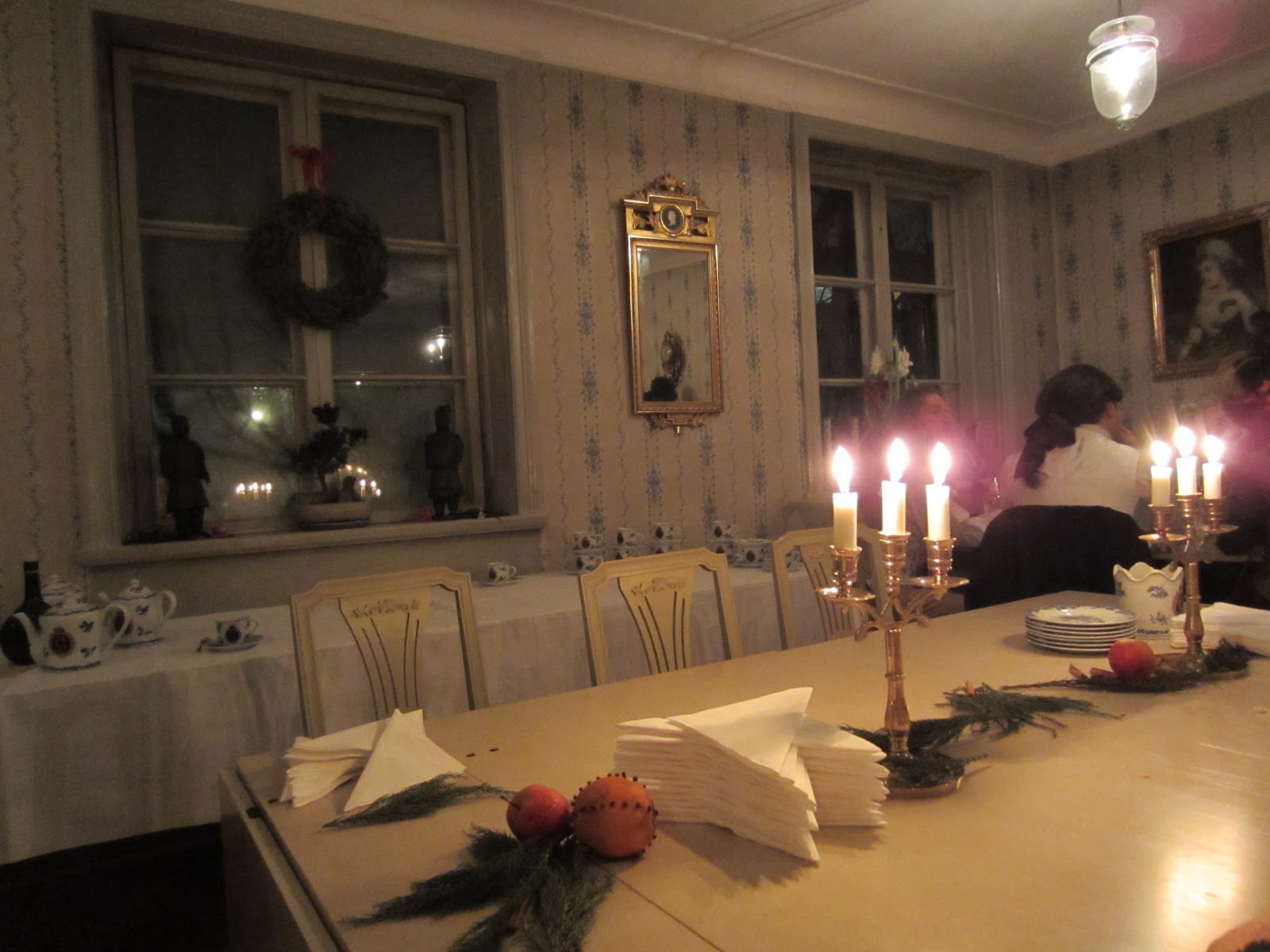 Sällskapet Gustafs Skål, tukholmalainen historianelävöittäjäyhdistys, joka Kristinehovin kartanossa tiiviisti puuhailee. Joka kerta hieman kirpaisee ajatella, että Ruotsissa valtio on noin vain lahjoittanut 1700-lukuisen kartanon yhdistyksen käyttöön kunnostusta ja ylläpitoa vastaan niinkin keskeisellä ja kauniilla paikalla kuin Södermalmilla. Joka tapauksessa meidän on syytä olla vain kiitollisia kruunun moisesta suopeudesta, sillä saimme taas pynttäytyä tanssiaispukuihimme ja suunnata viettämään ikimuistoista iltaa tukholmalaisten ystäviemme kanssa, syödä, laulaa, nauttia musiikista ja tanssia myöhään yöhön. Tällä kertaa juhlat tuntuivat valitettavasti loppuvan aivan liian varhain, ja oli kovin haikeaa hyvästellä lahdentakaisia tuttuja taas pitkäksi aikaa.